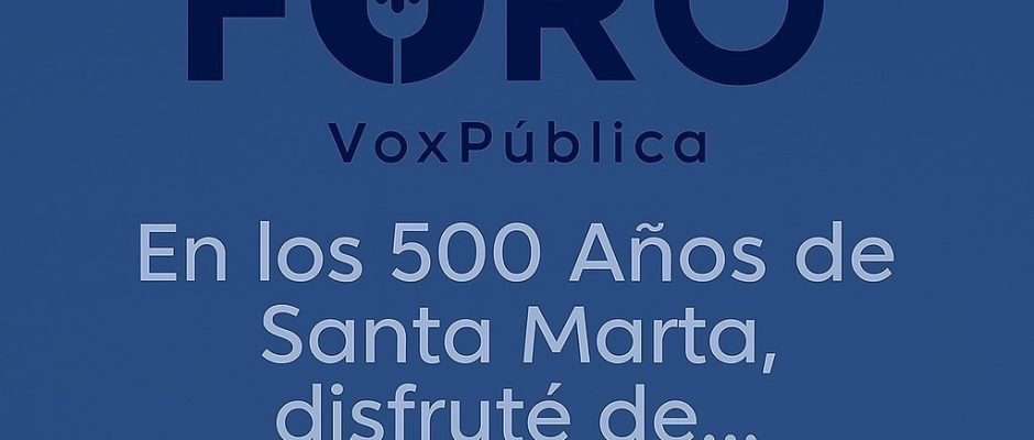 VoxPública abre este foro » EN LOS 500 AÑOS DE SANTA MARTA, DISFRUTÉ DE…» con el objetivo de que samarios y visitantes compartir como comunidad virtual sus experiencias en el marco de las actividades conmemorativas de los fundación hispánica de la ciudad. Además, comparte con nosotros tus mejores momentos. En el desfile, la playa, […]